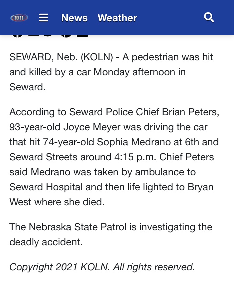 The town has a few taxis but no other way for the 93-year old to get around. Population 7000. If you are a healthy 70 year old you can get around on foot. Except when the 93-year old drives over you.
