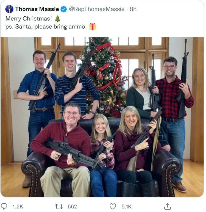 Republican Thomas Massie condemned for Christmas guns photo