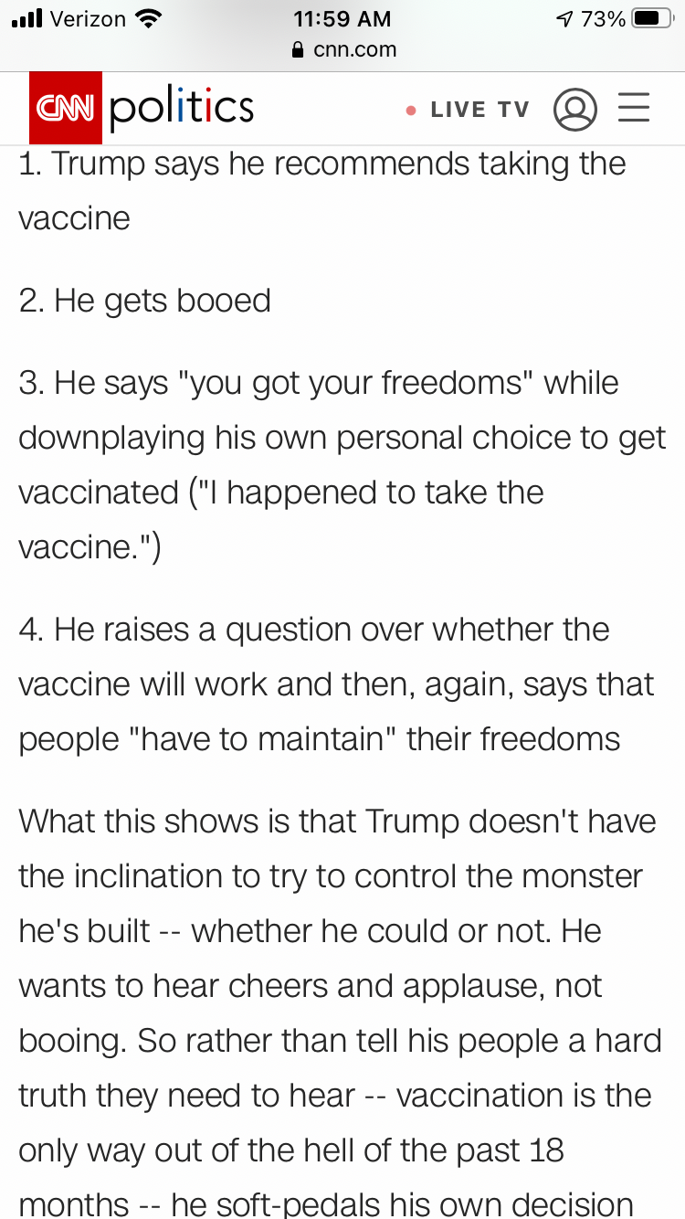 ..he soft-pedals his own decision to get the vaccine and makes sure people know he is on the side of their, um, freedoms.