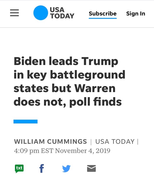 Trump led U.S. Sen. Bernie Sanders of Vermont, 48% to 45%, and had a lead of 48% to 43% over U.S. Sen. Elizabeth Warren of Massachusetts.