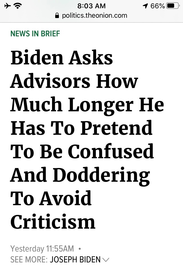 Biden responded to that Onion piece to affirm that he prefers Corvettes to Trans-Ams.