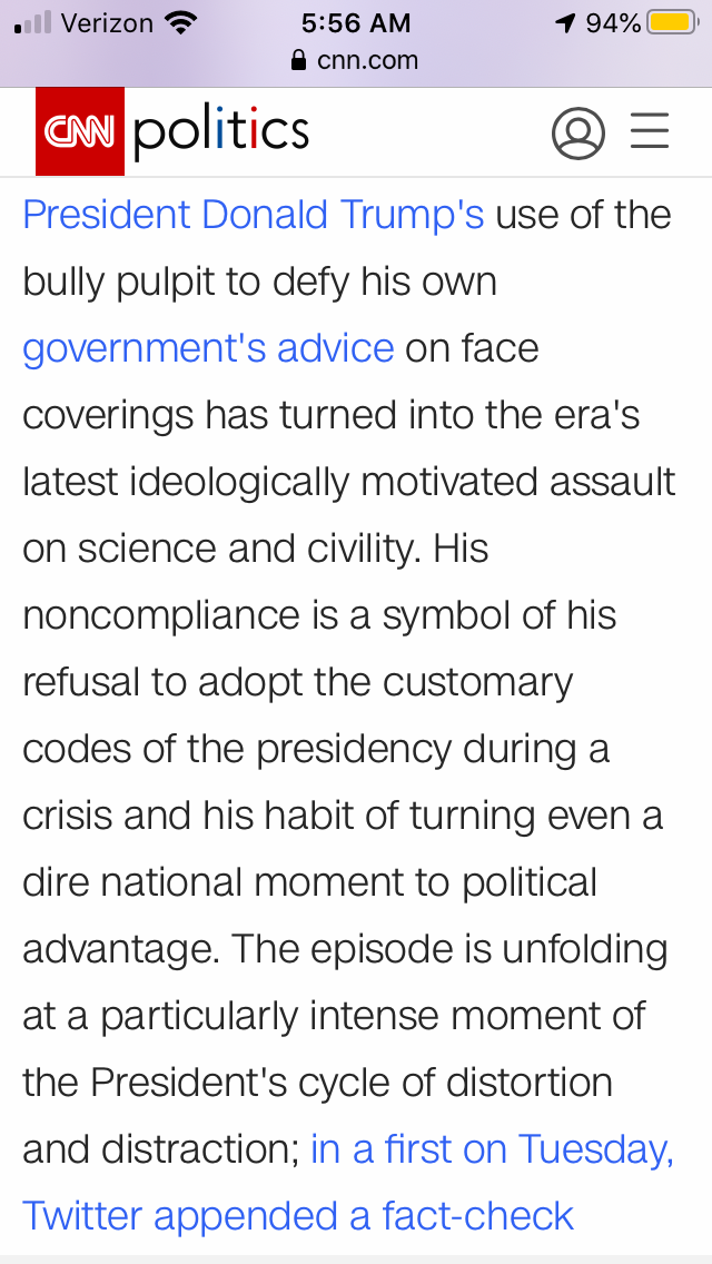 I don't expect the resident Trumpists to read such horrible, scurrilous lies. Indeed, I often post warnings as I did with that article so that they may safeguard their delicate sensibilities.
