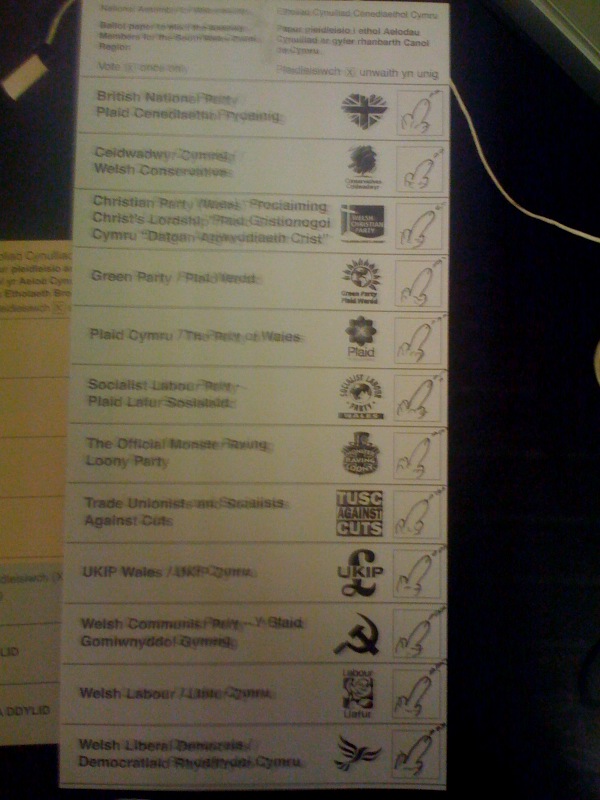 I X'd. I always do. Exercising the only bit of political clout I possess excites me. I had a wank afterwards.
