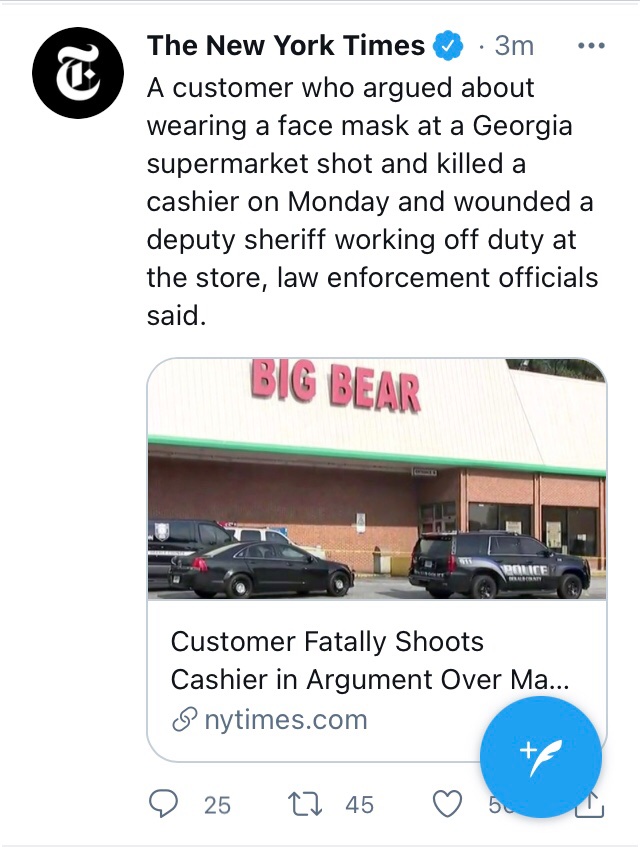 Imagine killing someone over a mask disagreement. What a terrible waste of life.