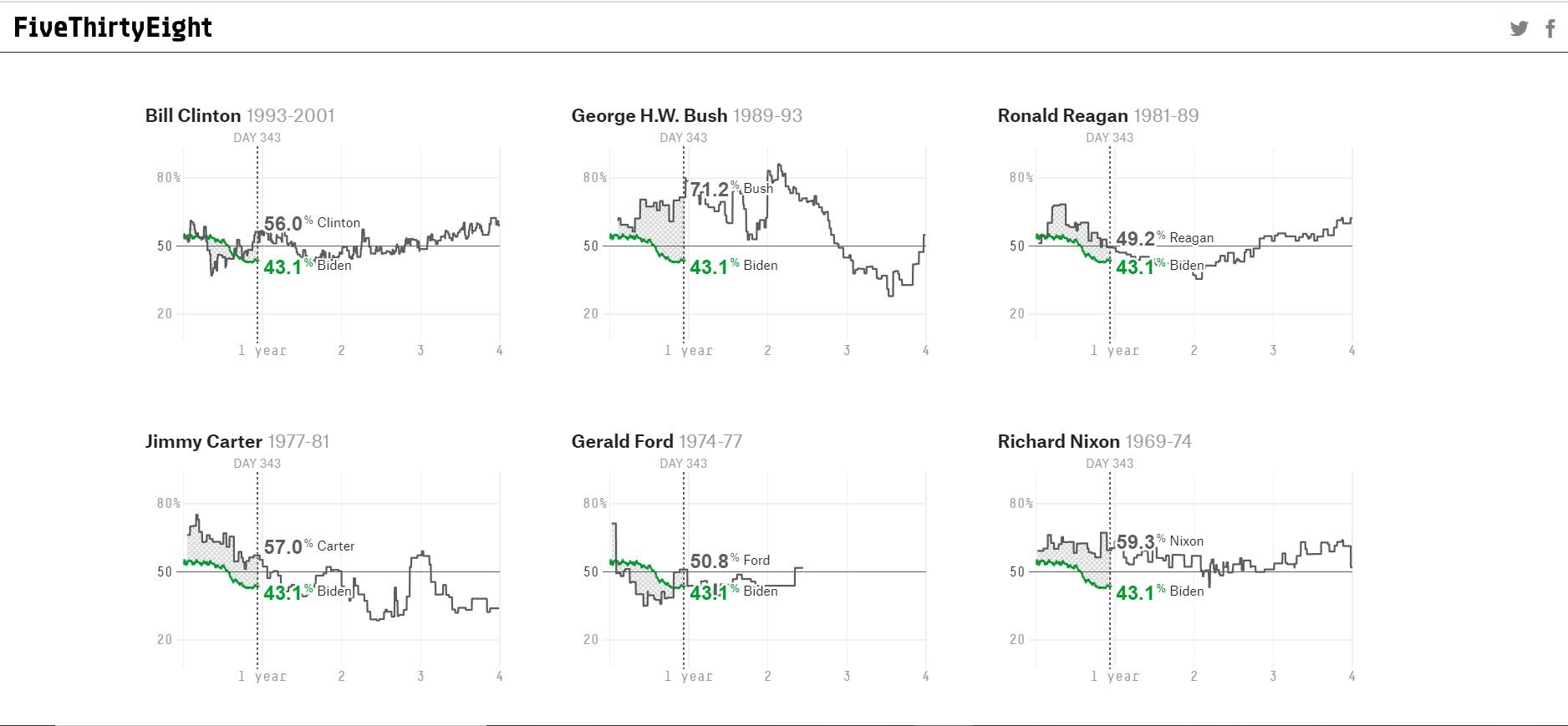 The Republicans would never support Biden, but the independents and young voters bring it below 50%. Looks like he is headed the Bill Clinton route more than the other presidents. The erratic up and down of Carter and Ford