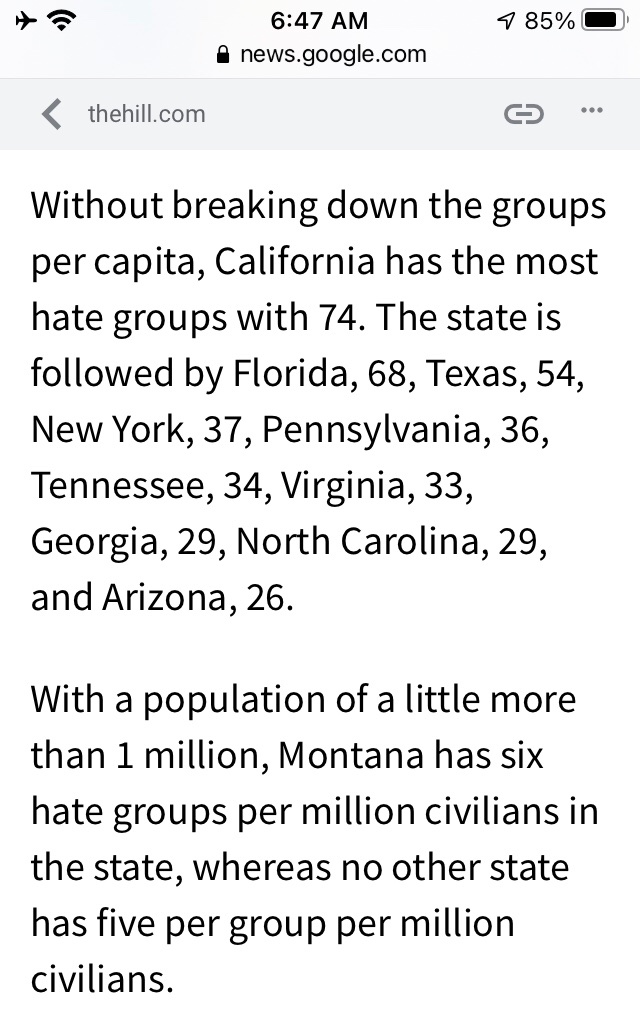 Montana has six hate groups, including two anti-Muslim groups, two white nationalist groups, a racist skinhead organization, and a chapter of the Proud Boys — a self-described brotherhood of Western chauvinism that spreads “anti-political correctness” and “anti-white guilt” agenda, according to the Southern Poverty Law Center.