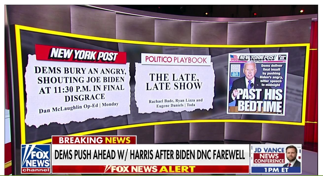 Fox: Biden gives late speech putting audience to sleep in 48 minutes that seemed like 48 hours. Sad Joe.