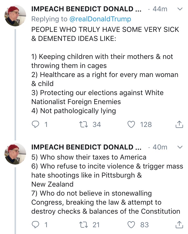 It's interesting to see that Trump considered his Russian commercial interests a conflict, where our friend doesn't.Brian Peacock wrote: ↑Wed Apr 24, 2019 10:57 pmYou know, I sometimes feel you slip in here from another dimension or a parallel universe.Forty Two wrote: ↑Wed Apr 24, 2019 5:23 pmI would like to see the quotes of Trump's consistent lies which were about doing business in Russia.Brian Peacock wrote: ↑Wed Apr 24, 2019 1:08 pmIt's not immoral do business in Russia - but that in itself does not address the specific context. It's immoral for a presidential candidate to consistently lie about doing business in Russia,