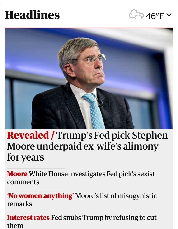 Trump withdraws asshole: Trump Says Stephen Moore No Longer Being Considered For Fed Post