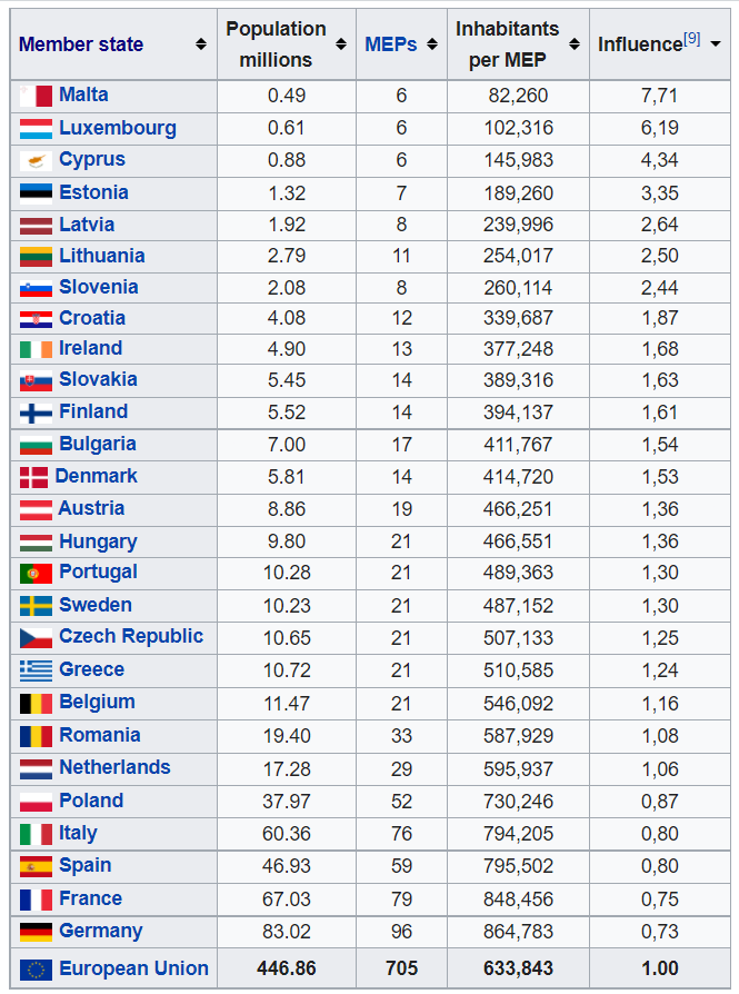 Maltese residents have about 10 times the voting power than a German.
