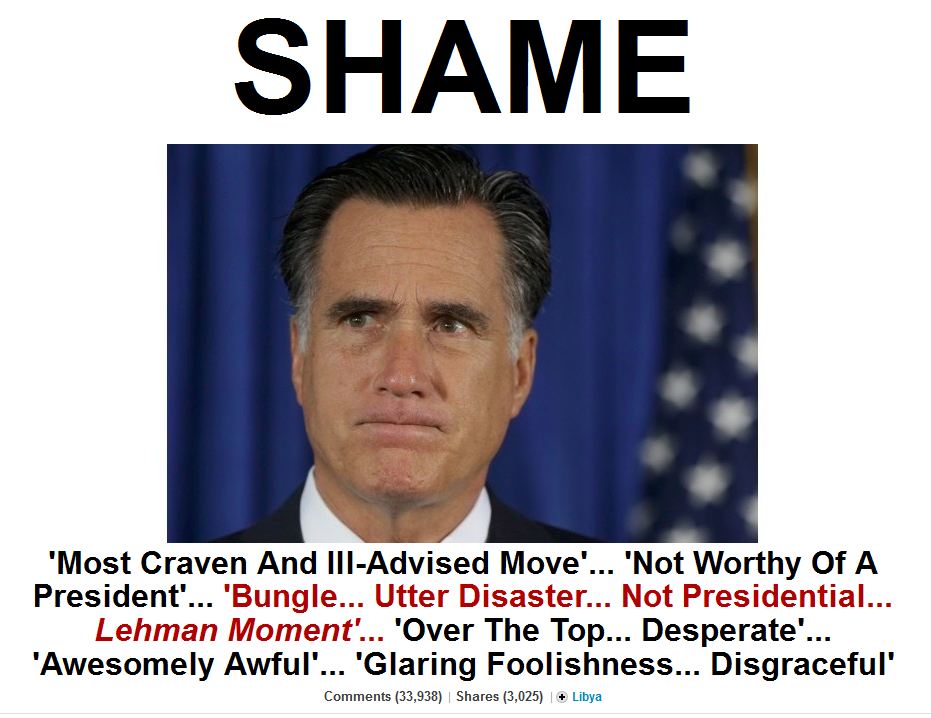 I haven't been too personally harsh towards Romney over the course of these threads - I prefer to slap around his dumb policies and trumpet the President's good ones rather than go for character attacks. But after today I think my patience with him has just plain had it. Mitt Romney is a miserable piece of shit.