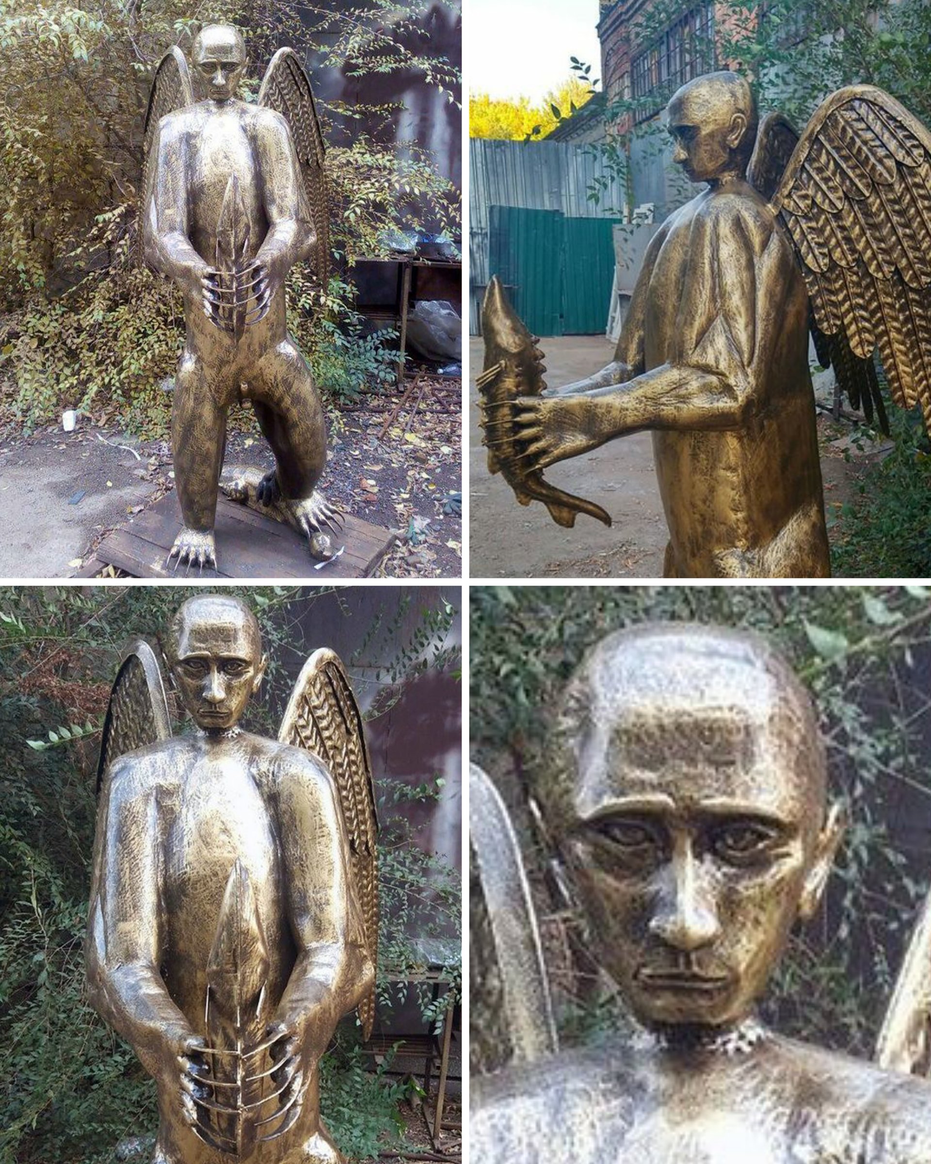 Statue by Viktor Korpachev, "Brain, Strength, and Soul". Vlad as a Bear Angel, holding a sturgeon, and stomping on an eagle. You can see the family connection with Dobby.
