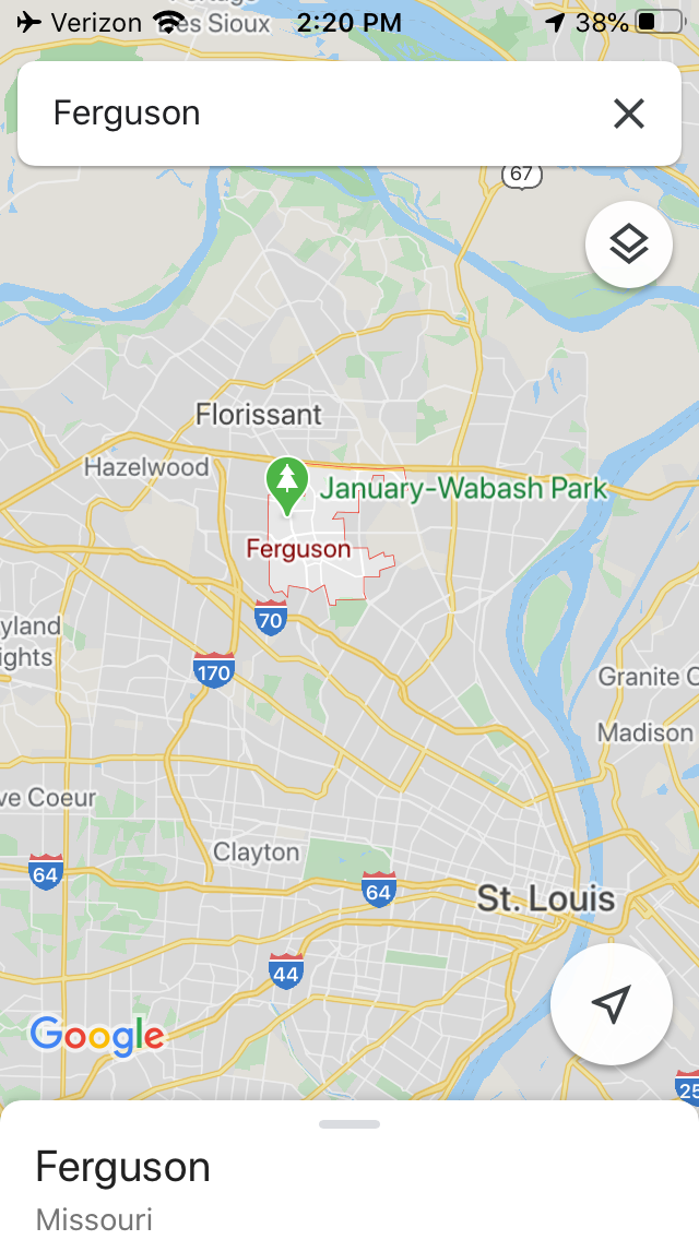 I would drive past Ferguson some 2 years, 1990s, to go pick up my kids from preschool by a rather complicated route. The interstates don't connect very well to each other. Anyway, I had no clue Ferguson would be the site of riots.