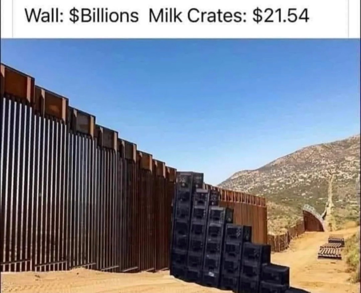 Trump wall vs 50 dollars worth of milk crates. Could use a pile of foam for landing on.