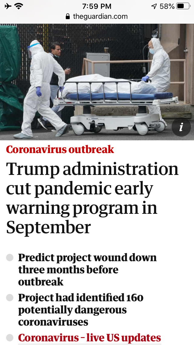 The WHO recommended not wearing masks, and has repeated regularly information agreeable to China.Sean Hayden wrote: ↑Fri Apr 03, 2020 9:30 pmWhat is it about a rapidly evolving situation full of unknowns that these people don't get? You can't have a clear and consistent guide from top to bottom and throughout. Shit changes and nobody knows exactly what will prove best. You can have a general strategy based on previous experience, and guess what, we have that, and have had.First, the Centers for Disease Control and Prevention (CDC) said that only health care workers and people who were sick needed to wear masks. Now, the White House is reportedly backtracking on that advice, and it may recommend that everyone wear face coverings when they’re out in public. Confusion over the whiplashing policies is likely to linger. Clear and consistent communication is one of the most important parts of pandemic response, and the federal government has already gotten that wrong.