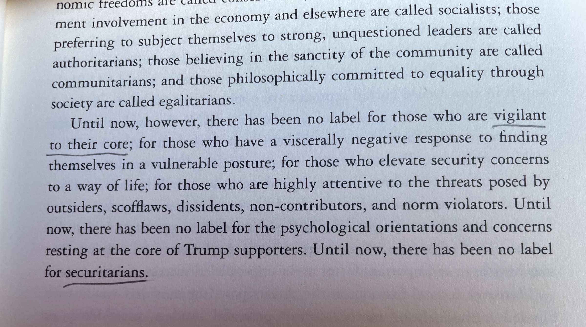 Our local professor John Hibbing labels MAGA as securitarians. Our bike club former treasurer was one. She reads every receipt line by line in her car before driving home. "Everybody is ripping you off."