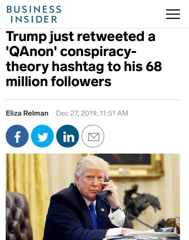 The QAnon theory centers on an anonymous online individual known as Q, who claims to be a government official with information about a covert plot to overthrow Trump. Followers of the conspiracy believe that, among other things, the world is run by a satanic cabal of elites and pedophiles led by Hillary Clinton and the so-called deep state, who Trump - with help from secret allies, including Robert Mueller - will eventually expose and defeat.
