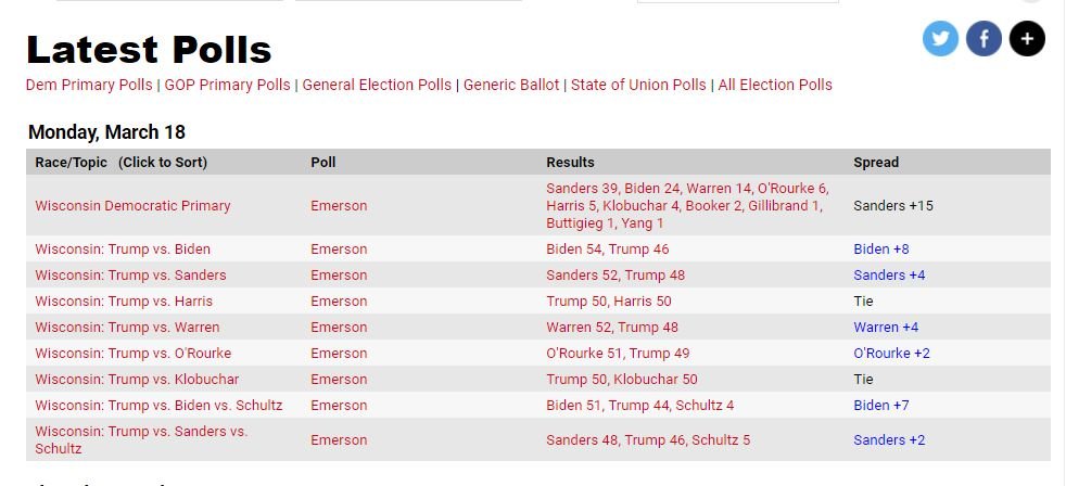 Both WI and MI running Democrats ahead of Trump, except for Harris.