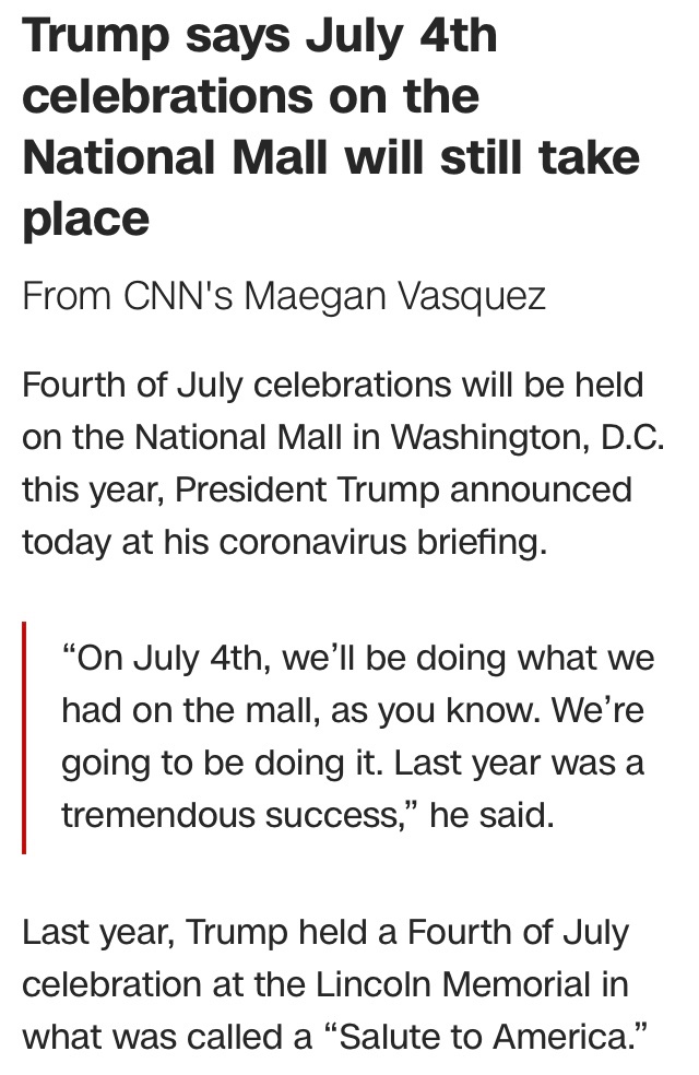 Of course. It would not do at all if some public minded citizens pulled a kennedy on him, would it?Brian Peacock wrote: ↑Wed Apr 22, 2020 11:19 pmEveryone knows he has an actor stand in for him at most of his public appearances anyway.![]()