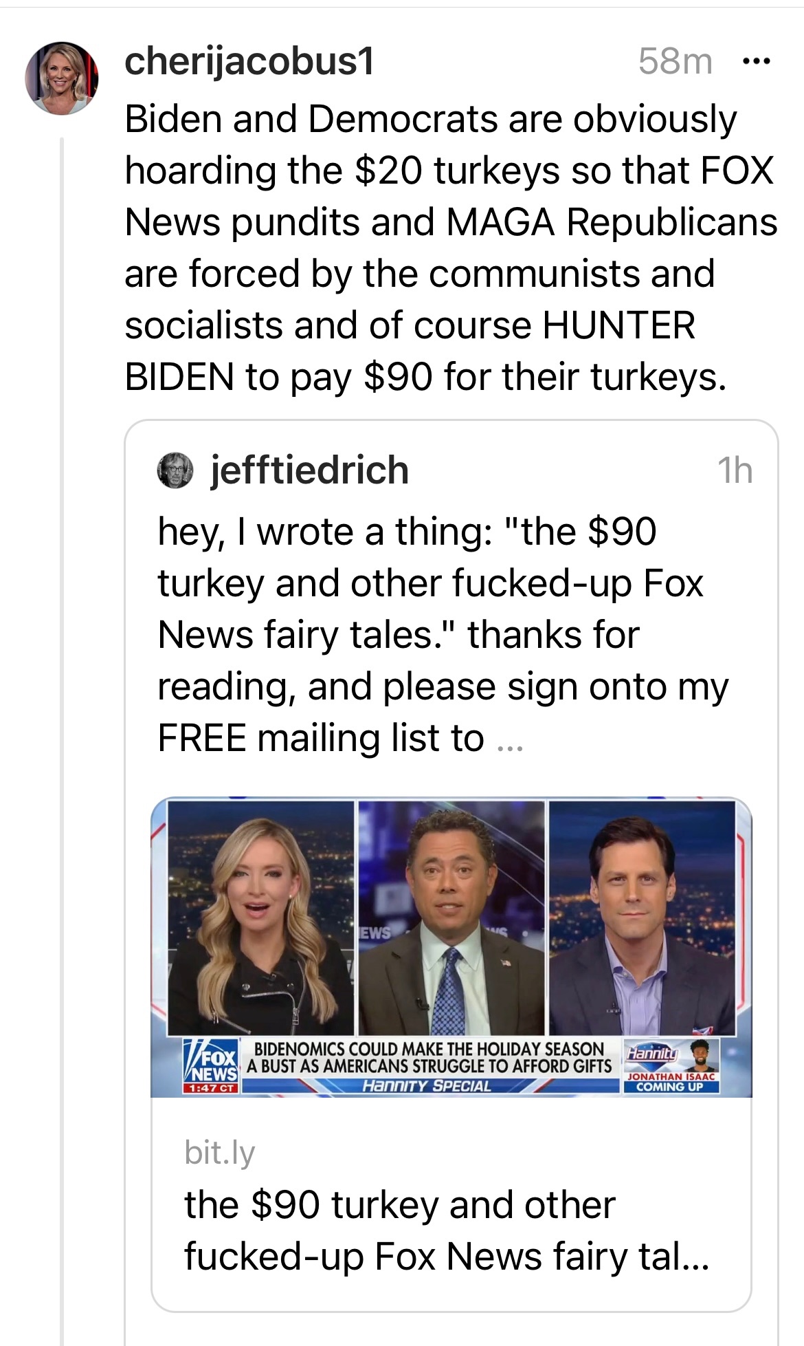 Meanwhile, only Fox News found 90 dollar turkeys.