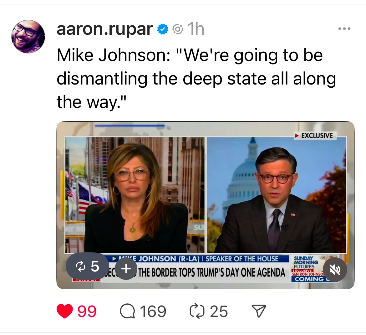 No. It just confirms, he repeating it, that they will at least chip away at social security. Deep state can be anything. Trump is not saying much, he will celebrate himself. But after foreigners, this is next on the list.