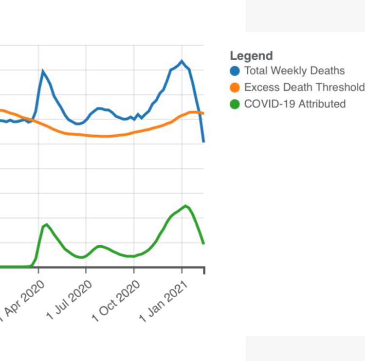 Daily deaths in US have fallen from over 2000 to 1000 a day in US.