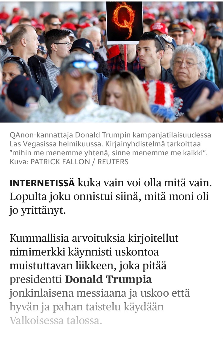 Helsinki paper labels Qanon a religion like cult and Trump the Messiah