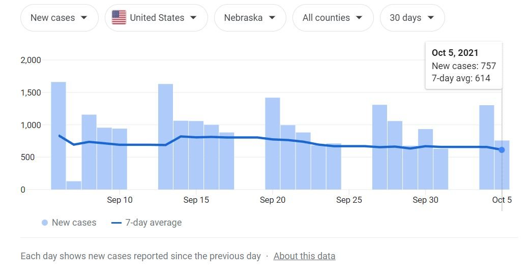 The county has failed to report data for a week. I assume they are included in the state level numbers. The 800 is low for a Tuesday. The cases are going down.