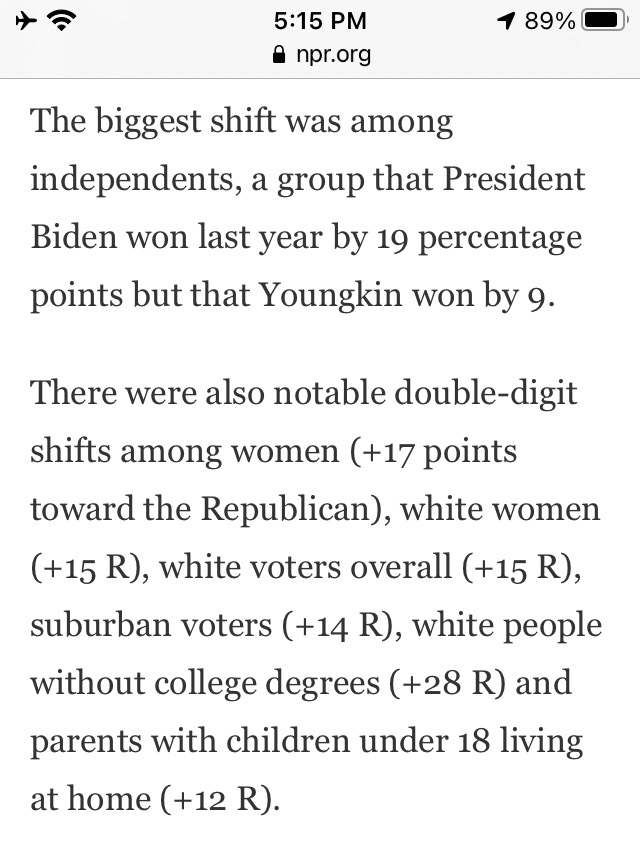 CRT hating businessman wins Virginia under banner of "protecting our children," winning Trump hating women back.