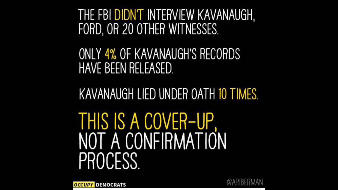 Blasey Ford and the others who alleged sexual misconduct by Kavanaugh. Despite his clear and repeated lies, Collins lauded Kavanaugh’s “forceful” testimony to the committee denying all of the accusations.