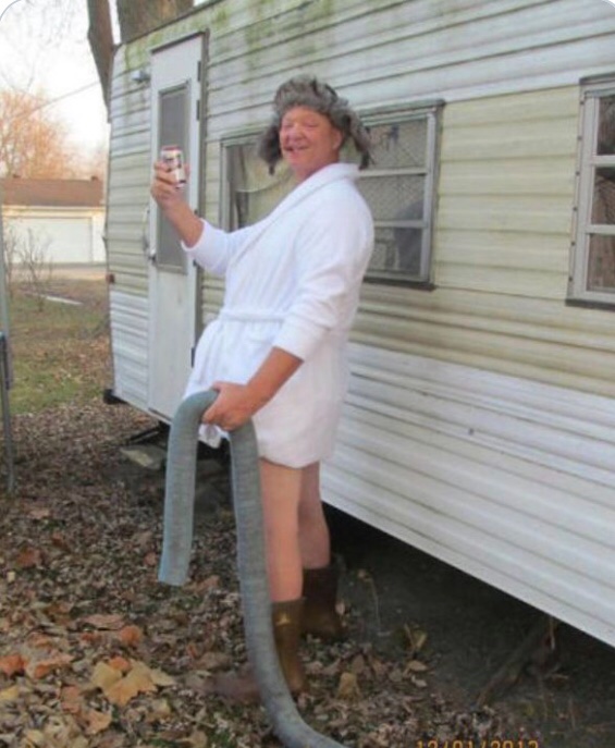 Gosh I hope that's a beer can under his bathrobe...