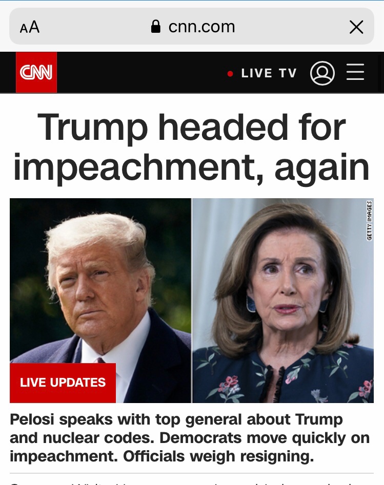 He's been a LOT less warmongering than his predecessor. Sowed more peace agreements than declarations of war.Joe wrote: ↑Fri Jan 08, 2021 11:26 pmWell, there is the whole Commander-in-Chief of the US military thing. He could order a drone strike on an Iranian general or something, or start a war, and then there's the little matter of the nukes he has the launch codes for.