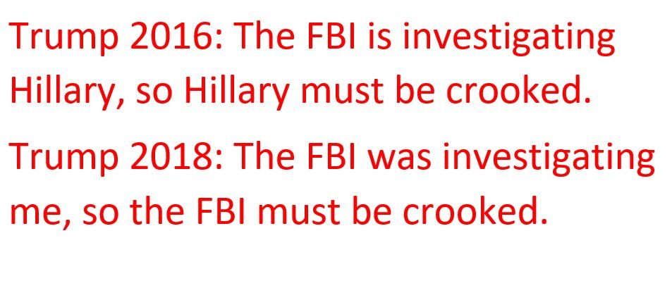 Tero 2016 to 2018 - when FBI investigates Hillary it's all made up about "her damn emails" and when they investigate Kavanaugh they're shills for Trump.