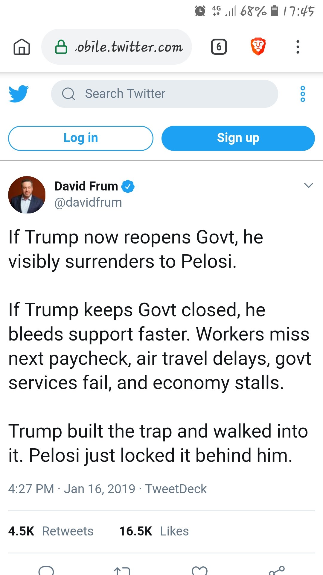 This will be funny as hell when Trump announces his wall win.Tero wrote: ↑Wed Jan 16, 2019 5:37 pm(I got stuff to do. Not reading most Cunt posts)