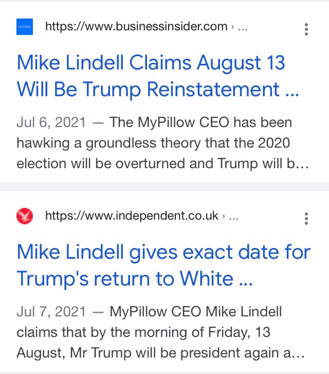 Speaking to his friends at The Victory Channel, Lindell claimed that God gave him his platform, and that's how he knows he'll win. Lindell has promised that tomorrow, Friday, Aug. 13, 2021, President Joe Biden and Vice President Kamala Harris will resign and, somehow, former President Donald Trump will be reinstated.
