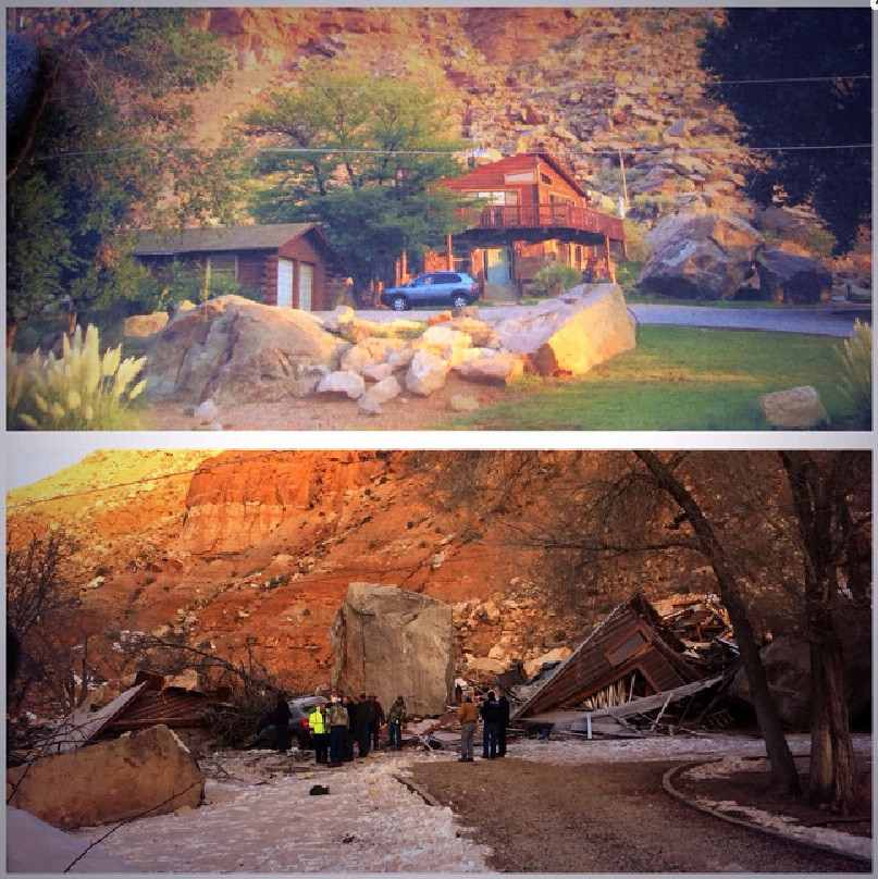 I saw the boulder article yesterday and there was another huge boulder that ended up stopping right by the back wall of the house; it's seriously large. I'd be looking to move :D