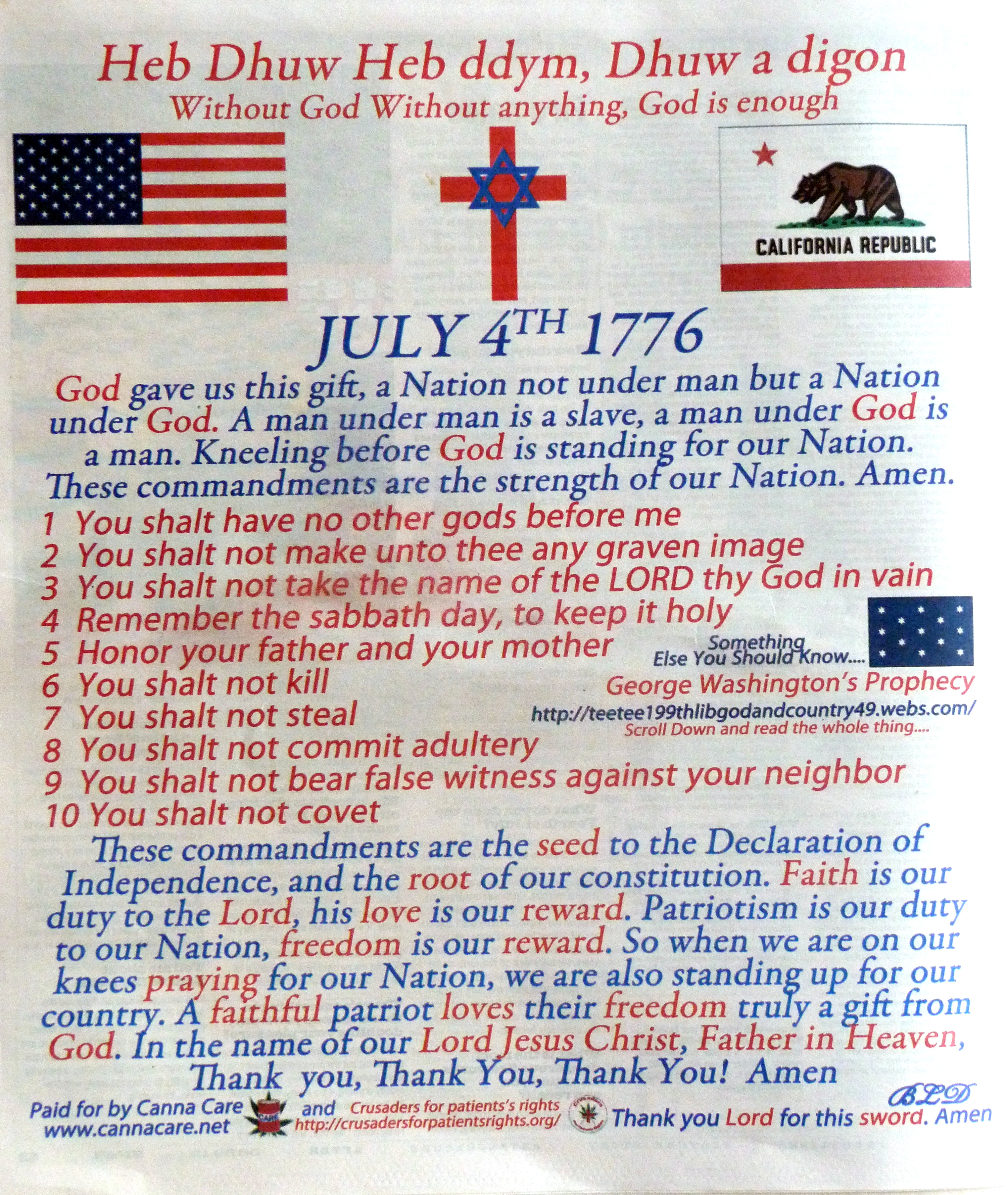I mean, start in Merica with a Welsh saying? Prophecy of george washington?