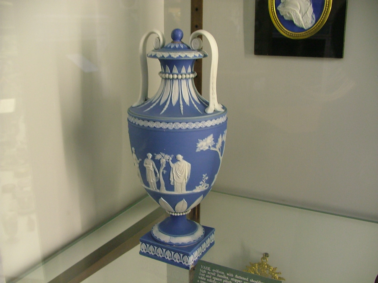 Next, a honking big collection of Jasperware pottery (I think - it's blue Wedgwood, and all original). There's about 300 pounds of pottery in these glass cases. Couple of close ups, and the panorama shots.