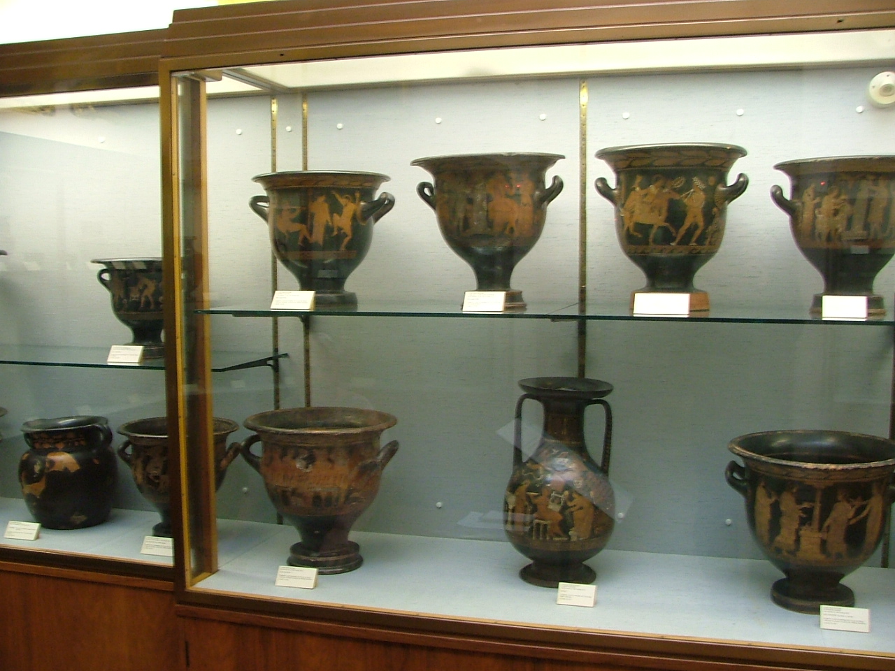 Next, the Greek pottery collection. Again, there's about 200 pounds in weight of pottery in the cases.