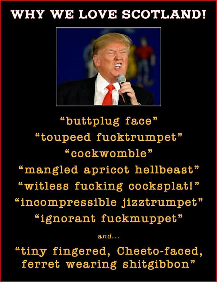 I love how Coito runs to the defence of Trump with a total misrepresentation. Scotland weren't going wild (in the positive) about the vote. And they didn't take their country back. Scotland want IN to the EU.