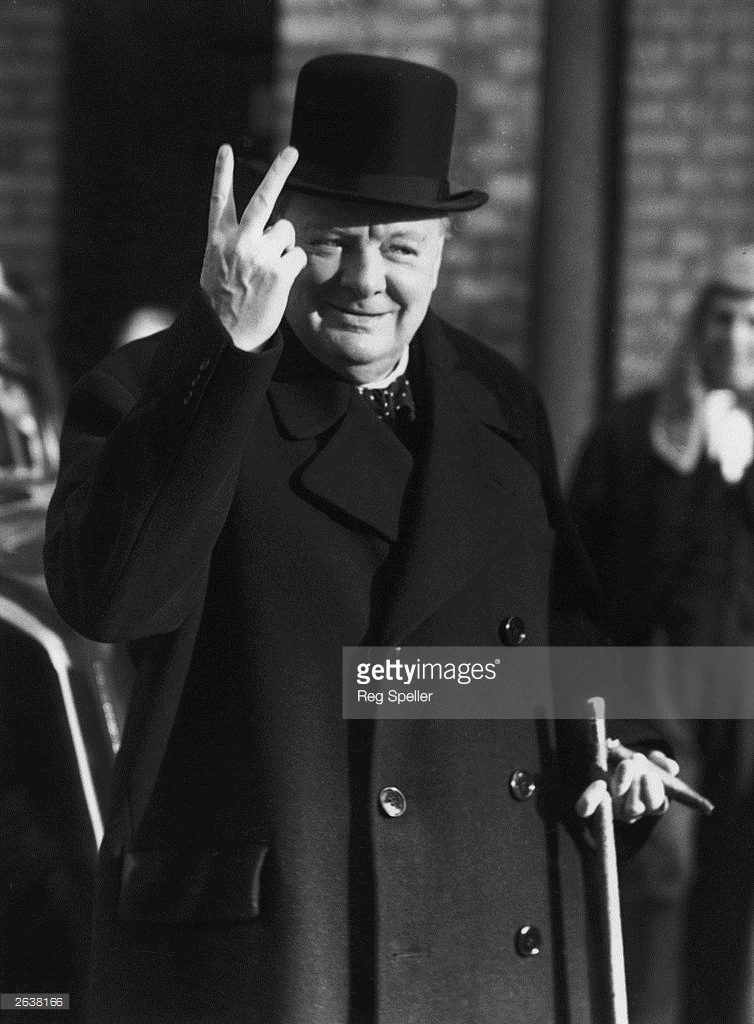 So Churchill was giving us all the razz?!Śiva wrote:I believe it's palm out for peace and victory and palm in for "up yours."Forty Two wrote:Indeed, the American Bellamy salute was similar to the Nazi salute, although it predated the Nazis by about 50 years, and had nothing to do with Nazism. After all, a peace sign can mean V-for-victory in war, or even "up yours" depending on the times or the culture. Harder to contemplate are British princesses and princes doing the Nazi salute in the 1930s, or English football teams engaging in the Nazi salute during the German national anthem in 1938.