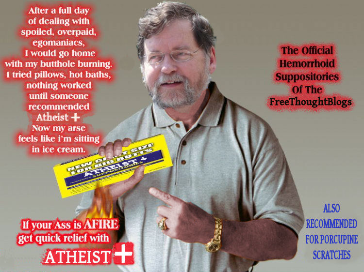 I figured this out well over two years ago preSkepchick.Coito ergo sum wrote:What bothers me the most is that I have to go back to Seth and admit that he was right. There really is a subset of atheists called "Atheists" (albeit, now, they are dubbing themselves "Atheist Plus").... and they really are as dickish as Seth made them out to be. And, there are enough of them, and they are vocal enough, to embarrass us all.Jaygray wrote:‘Atheism Plus’ sounds like an advertisement for new improved washing powder, and I would take any claims to its efficacy with the same truckload of salt I would use for any other piece of demographic marketing. I bet the name will fit on a T shirt wonderfully.