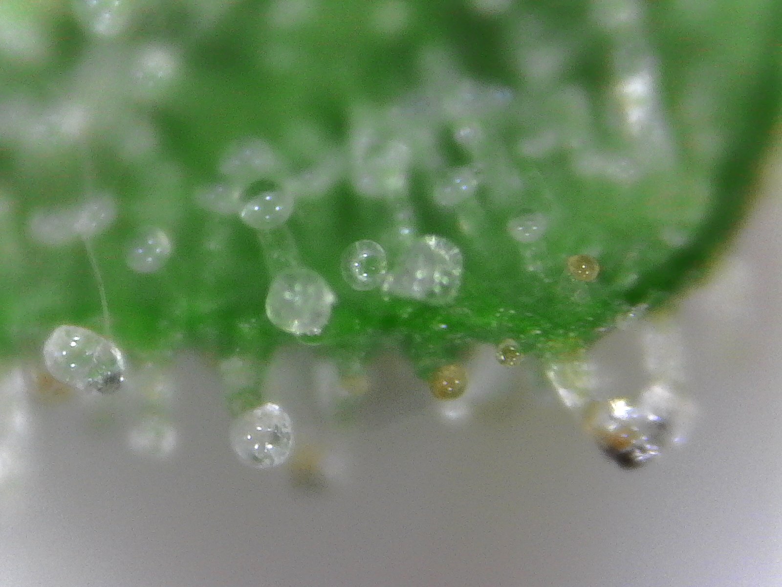 While staring at my plant, I noticed that some branches on one side looked a bit different than branches on the other. I snipped a sample, and tossed it under the microscope.