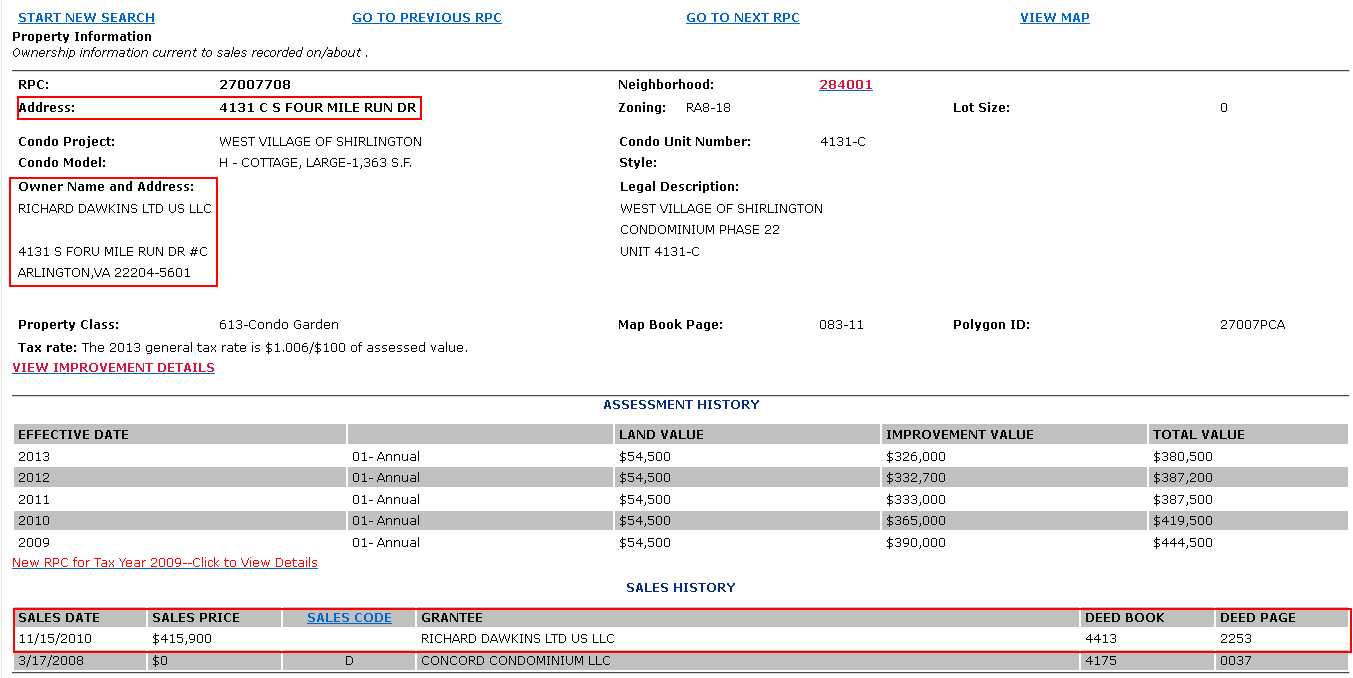 And a quick run of that address through the Arlington, VA Property Data Search reveals the following: