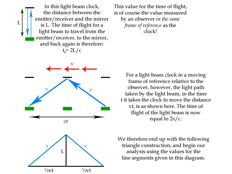 By Pythagoras, we have that x2 = L2 + (½vt)2 = L2 + ¾v2t2