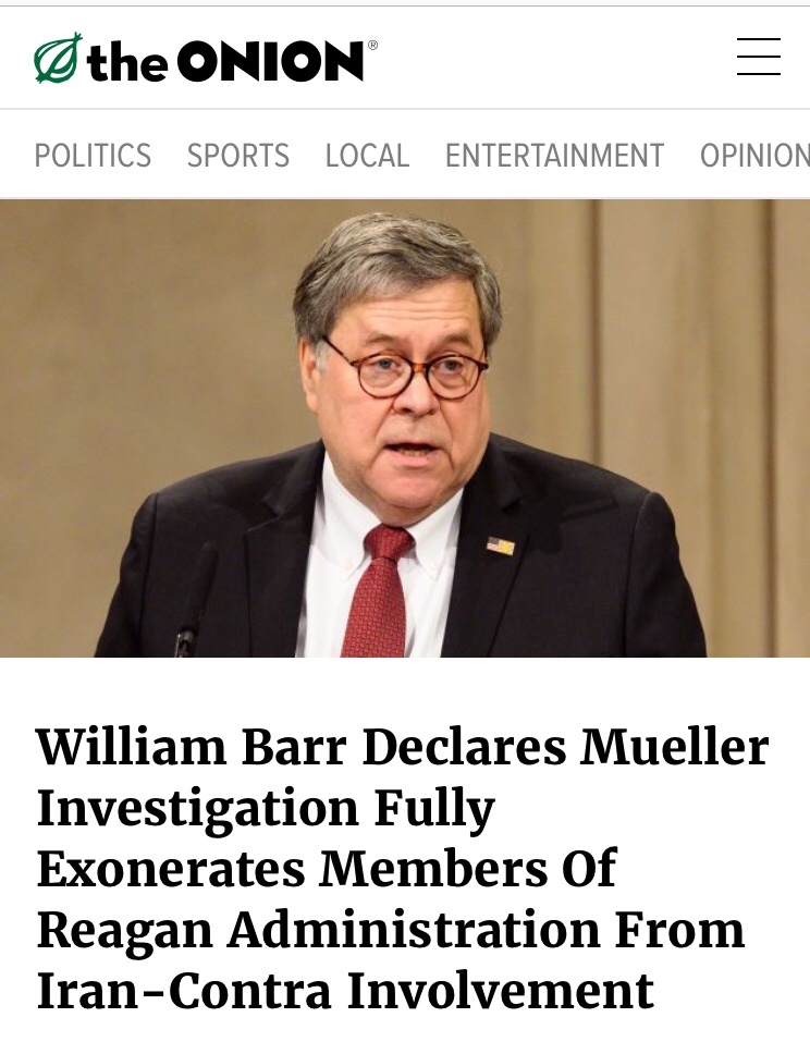And the obstruction of justice thing may not be completely put to bed. As the video Forty Two linked noted, Mueller explicitly didn't exonerate Trump of obstruction, he left it to Rosenstein and Barr to decide whether to prosecute.