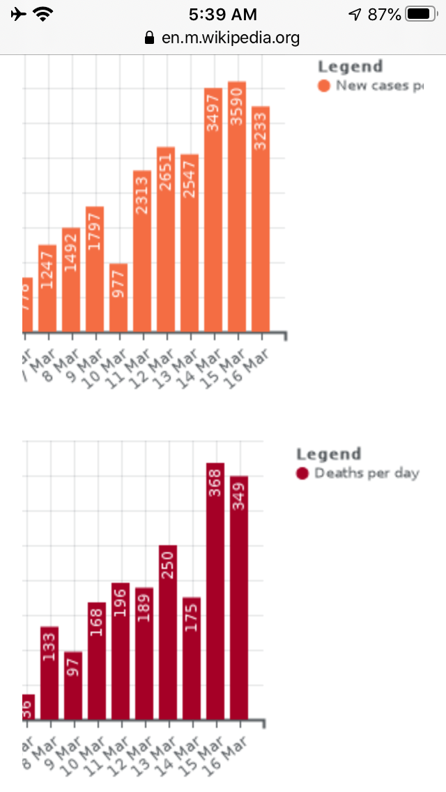 Given what we know from the early stages of the outbreak in China, the infection and mortality rate etc, we in Europe appear to be in the early stages of the contagion. The action of governments here is to flatten the rate if infection to avoid overwhelming health services, because while medical interventions in the more extreme cases are broadly effective if the health system is swamped by a sudden surge both primary deaths from the infection and secondary deaths from people with other condition will spike because health services will be unable to admit patients into a system already running at maximum capacity.