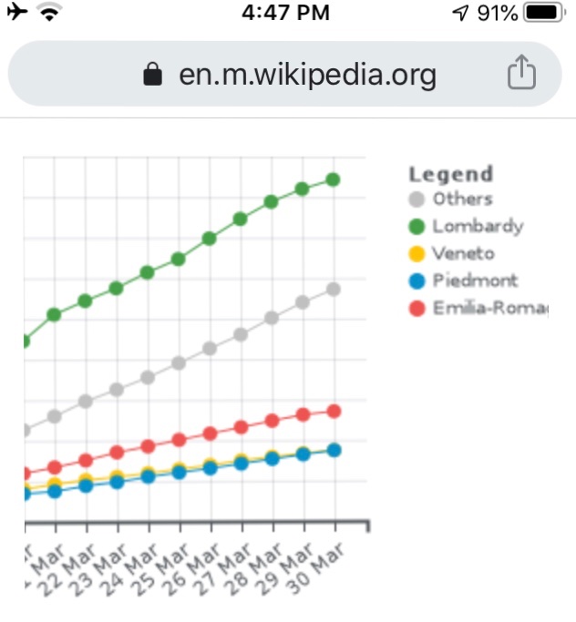 Italy cases by region. There is actual flattening in Lombardy curve: