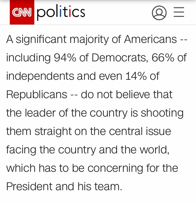 It is absolutely terrifying that 86% of Republicans believe he is telling the truth.