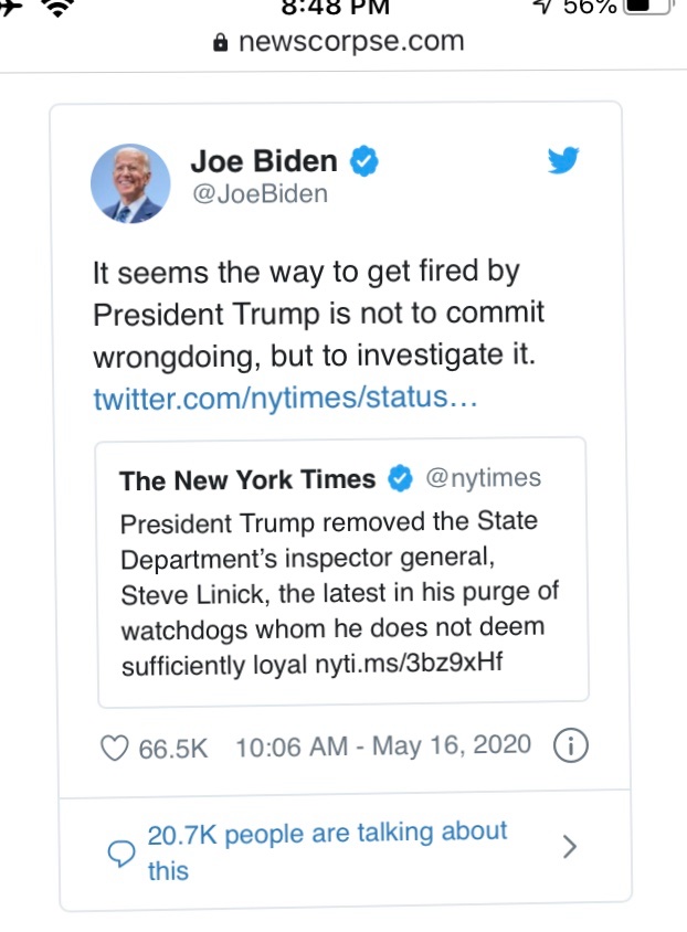 Exactly.Joe wrote: ↑Sun May 17, 2020 4:16 amSomeone somehow committed a crime according to some newspaper....Tyrannical wrote: ↑Sun May 17, 2020 1:56 amSomeone leaked a FISA court approved phone tap transcript to the press. I assume that is somehow illegalBarnettNewman wrote: ↑Sat May 16, 2020 8:24 pm